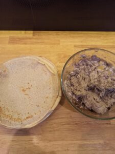 Ser do naleśników- serek twarogowy np. Bieluch ugniatamy z kakao (ilość do smaku) i cukrem (lub erytrytolem/ ksylitolem).