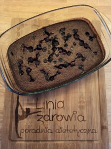 Zblendować wszystkie składniki. Przelać do naczynia żaroodpornego. Posypać 3/4 szklanki borówek amerykańskich. Piec przez 45min w 200 stopniach C.