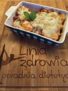 Do naczynia żaroodpornego przekładamy mięso z warzywami, na górę układamy ziemniaki posypujemy startym serem. Wstawiamy do piekarnika na 15 min w 180 °C z termoobiegiem.